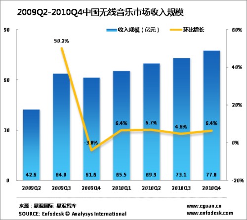 2010年第4季度中國無線音樂市場收入達(dá)77.8億元