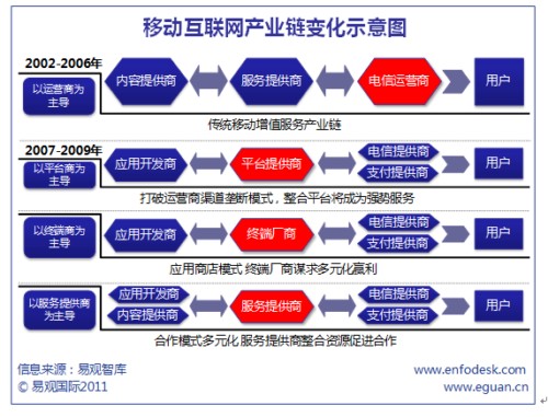 易觀:運營商在移動互聯(lián)網(wǎng)產(chǎn)業(yè)鏈中逐漸失去主導