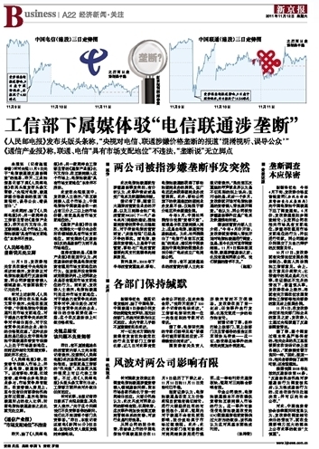 工信部下屬兩家媒體駁電信聯(lián)通涉嫌壟斷報(bào)道