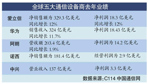通信設備市場全球前5強中國占2席