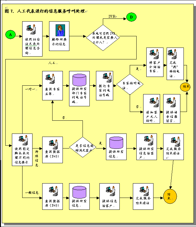 在上文提到的各種呼叫處理辦法都需要與提供服務(wù)的公司部門緊密配合和協(xié)作。這些部門將負(fù)責(zé)及時(shí)準(zhǔn)確地為呼叫中心服務(wù)提供信息,滿足經(jīng)過(guò)呼叫中心或網(wǎng)絡(luò)初期處理的服務(wù)請(qǐng)求。
