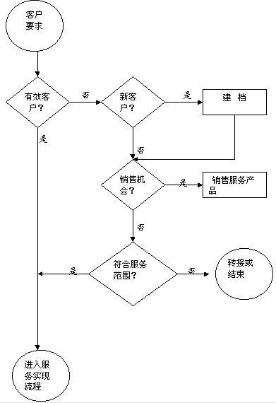 ----在呼叫中心中,面對客戶的流程主要有三大類:核實(shí)流程,服務(wù)實(shí)現(xiàn)流程和知識流程。我將三個(gè)典型的流程圖列出并希望能夠省略文字解釋的篇幅。根據(jù)業(yè)務(wù)類別的不同,圍繞著主要流程還可以有許多子流程。如在銷售型呼叫中心中服務(wù)實(shí)現(xiàn)流程中就可能會銷售線索派送跟蹤流程和立即銷售流程等。而在立即銷售流程中可能又會有付款收費(fèi)流程的等。