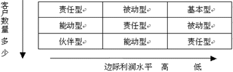 需要指出的是這5種程度的客戶關(guān)系類型并不是一個簡單的從優(yōu)到劣的順序,企業(yè)所能采用的客戶關(guān)系的類型一般是由它的產(chǎn)品以及客戶決定的, 比如寶潔公司它的洗發(fā)水、洗衣粉的客戶之間是一種被動性的關(guān)系:寶潔設立客戶抱怨處理機構(gòu),處理客戶投訴,改進產(chǎn)品;但是寶潔和沃爾瑪特之間卻可以建立互惠互利的伙伴性關(guān)系。科特勒根據(jù)企業(yè)的客戶數(shù)量以及企業(yè)產(chǎn)品的邊際利潤水平提供了一個表格幫助企業(yè)選擇自己和是的客戶關(guān)系類型。