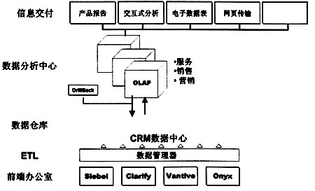 根據(jù)Hyperion的定義,CRM可以分為幾類,目前比較常見的是運(yùn)營型CRM——前端辦公室與客戶間各種接觸點(diǎn)的垂直集成,包括通過多種連接方式的交付在內(nèi)的銷售、市場和服務(wù),以及前、后端辦公室的無縫集成。Hyperion認(rèn)為這些僅僅是CRM的初級(jí)功能,CRM的真正意義在于它能夠在運(yùn)行過程中對相關(guān)數(shù)據(jù)進(jìn)行分析,并提出智能化的建議,即分析型CRM。