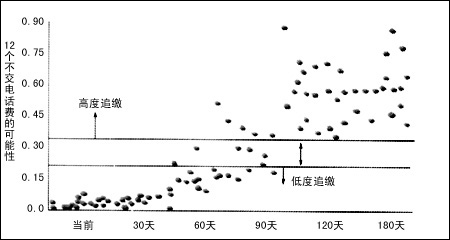 這樣,Bell Atlantic就能計算出有關客戶的概率可能性,包括客戶從一個月未交電話費到兩個月未交的可能性;客戶從三個月未交電話費到變成壞債的可能性,以及壞債客戶變成死債客戶的可能性。同時,還對追交拖欠電話費用的策略提供線索,確認哪些帳戶應該進行追債活動;哪些帳戶有可能拖欠電話費;并且提供量化的追債策略,對不同的帳戶采用不同的辦法。