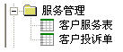 服務(wù)管理模塊由客戶(hù)投訴單和客戶(hù)服務(wù)表組成。這其中存在著一個(gè)工組流轉(zhuǎn)。客服人員填寫(xiě)客戶(hù)投訴單,技術(shù)部經(jīng)理審批客戶(hù)投訴單,被指派的人員辦理客戶(hù)服務(wù)表。