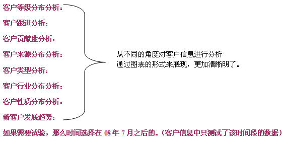 - 客戶(hù)分析:根據(jù)客戶(hù)管理的進(jìn)程,多方位多角度的分析客戶(hù)的構(gòu)成、發(fā)展、進(jìn)程、貢獻(xiàn)等,幫助企業(yè)快速響應(yīng)客戶(hù)的需求,有價(jià)值的關(guān)懷客戶(hù),使企業(yè)客戶(hù)關(guān)系管理建立起一套科學(xué)的體系。