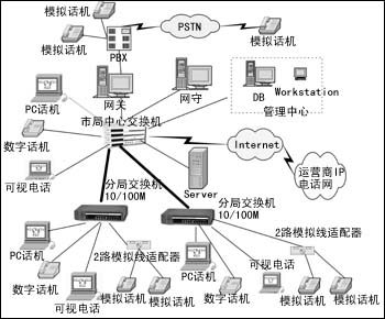 當(dāng)中國電信、中國聯(lián)通等運(yùn)營商的IP電話網(wǎng)對外開放時,該網(wǎng)上的數(shù)字電話可通過網(wǎng)守認(rèn)證直接連入各運(yùn)營商的IP電話網(wǎng),已有的模擬電話通過與市局中心的程控交換機(jī)PBX相連的IP電話網(wǎng)關(guān)進(jìn)入各運(yùn)營商的IP電話網(wǎng),撥打長途電話時只需支付IP電話結(jié)算費(fèi)(比現(xiàn)在市面上的IP電話費(fèi)便宜很多)。在市局中心設(shè)有網(wǎng)守和管理中心,控制和接續(xù)各話音呼叫,并對系統(tǒng)進(jìn)行管理。