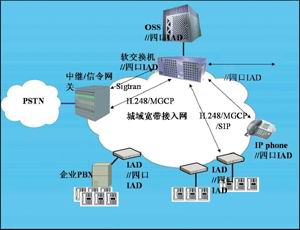 本地軟交換通過中繼/信令網(wǎng)關與PSTN互通,用戶接入終端形式通常有IAD(集成接入設備)和IP phone。IAD提供普通電話POTS接口,容量從單門到幾百門。IAD根據(jù)容量可以放置在用戶室內(nèi)、樓道或?qū)S脵C房里。IP