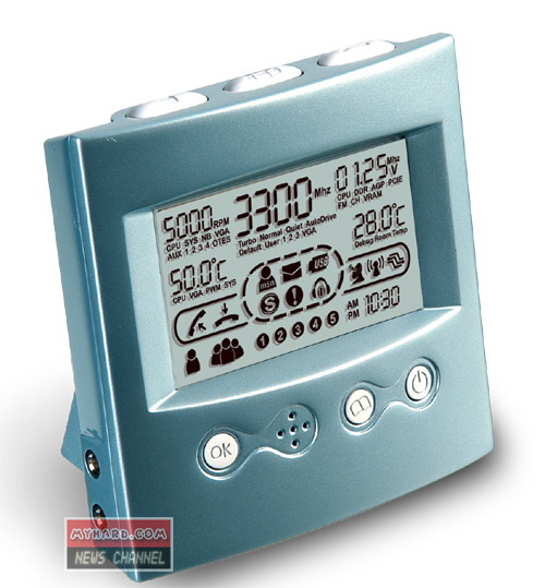 這個(gè)裝置,其實(shí)是一項(xiàng)早期工具的衍生產(chǎn)品。早在2004年,這個(gè)具有獨(dú)立顯示屏的小東西被開(kāi)發(fā)出來(lái),用以控制電腦的超頻設(shè)定并監(jiān)控系統(tǒng)的效能。現(xiàn)在這個(gè)在下周起于各大通路都買(mǎi)得到的新機(jī)種已納入Skype話(huà)務(wù)管理功能,使用者可直接把頭戴式耳機(jī)接到這個(gè)小時(shí)鐘上,one-touch輕輕一按,便可立即進(jìn)行接通電話(huà)、速簡(jiǎn)撥號(hào)及電話(huà)會(huì)議。