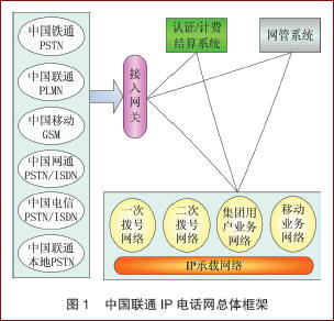 中國(guó)聯(lián)通IP電話網(wǎng)自1999年6月入運(yùn)營(yíng)以來,經(jīng)過一期、二期和三期工的建設(shè),目前,網(wǎng)絡(luò)已覆蓋中國(guó)329個(gè)地市,E1端口規(guī)模超過1.8萬個(gè),成為全球最的IP電話網(wǎng)絡(luò)。網(wǎng)絡(luò)的話務(wù)量已經(jīng)達(dá)到月近10億分鐘,已是世界上流量最大的電話網(wǎng)絡(luò)。中國(guó)聯(lián)通IP電話網(wǎng)總體框架圖1所示,包括IP承載網(wǎng)絡(luò)、業(yè)務(wù)網(wǎng)絡(luò)(包式括一次撥號(hào)業(yè)務(wù)網(wǎng)、二次撥號(hào)業(yè)務(wù)網(wǎng)、集團(tuán)用戶業(yè)務(wù)網(wǎng)和移動(dòng)用戶業(yè)務(wù)網(wǎng))、IP電話網(wǎng)絡(luò)管理設(shè)備(如計(jì)費(fèi)結(jié)算系統(tǒng)、網(wǎng)管系統(tǒng)等)、與各類本地網(wǎng)絡(luò)連接的接入網(wǎng)關(guān)等部分。