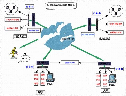 按照西貝公司的要求,ICEFLOW采用FUNCTION口將其普通辦公區(qū)和重要區(qū)域(如財務(wù)區(qū))分離開來,進一步保障關(guān)鍵數(shù)據(jù)傳輸?shù)陌踩,采用VOIP電話,將為公司節(jié)約大量電話費用。