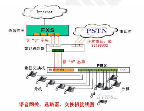 使用網(wǎng)關(guān)電話(huà)打國(guó)內(nèi)/國(guó)際其他普通公話(huà)或手機(jī),稱(chēng)為“點(diǎn)對(duì)面模式”。在使用智能路由選線器以后,打出電話(huà)時(shí)自動(dòng)根據(jù)首位字頭,例如“0”,判斷選擇市話(huà)或者VOIP專(zhuān)線通話(huà),--字頭有“0”,時(shí)自動(dòng)走VOIP網(wǎng)絡(luò)線路,字頭沒(méi)有“0”時(shí),選擇走通常的市話(huà)線路,完全不改變我們過(guò)去使用電話(huà)的習(xí)慣!