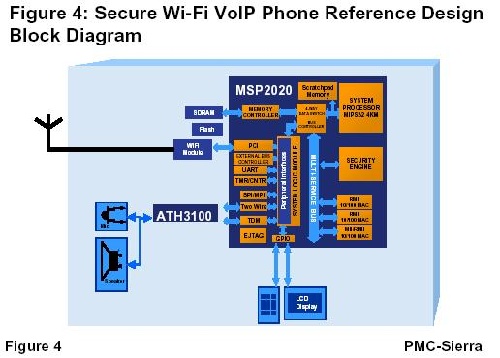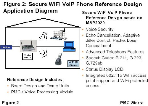 圖2:PMC-Sierra具備安全特性的VoIP Wi-Fi電話(huà)應(yīng)用原理圖