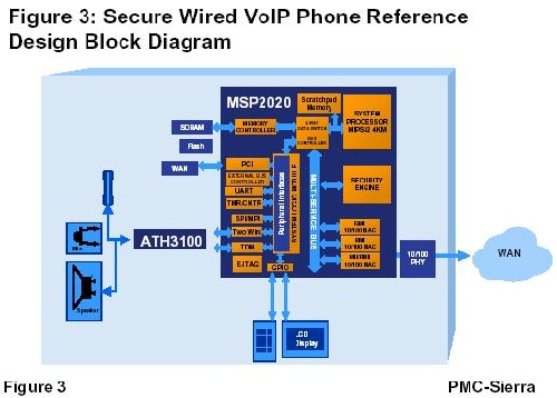 PMC-Sierra的MSP2020是VoIP電話(huà)參考平臺(tái)的基礎(chǔ),可以使具備安全特性的VoIP產(chǎn)品在價(jià)格和性能上都達(dá)到新的高度。MSP2020不需要單獨(dú)的處理器、語(yǔ)音處理DSP、安全芯片以及多個(gè)以太網(wǎng)MAC,其全集成式設(shè)計(jì)簡(jiǎn)化了電話(huà)設(shè)計(jì)復(fù)雜性,使整個(gè)產(chǎn)品成本(BOM)減少,可以讓OEM與服務(wù)提供商迅速向市場(chǎng)提供差異化VoIP電話(huà)產(chǎn)品。