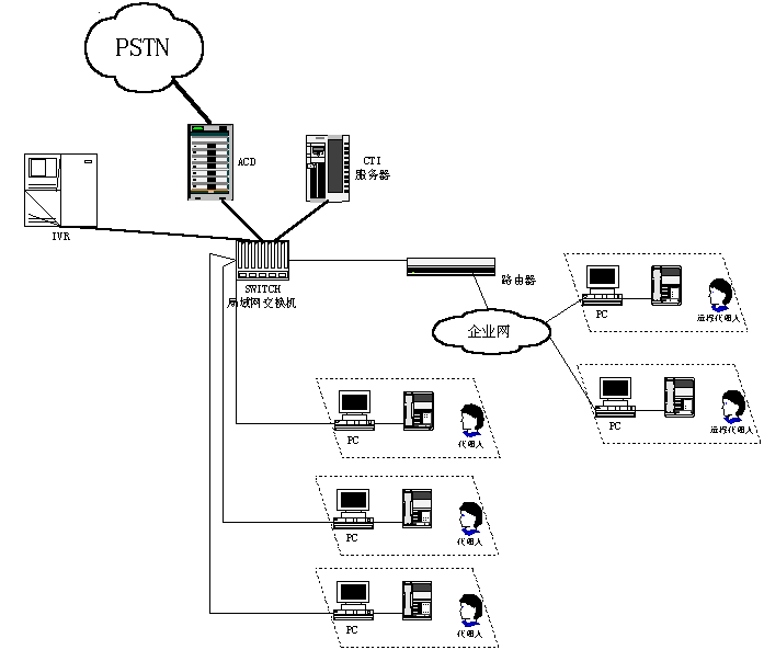 采用IP技術(shù)后,由于因特網(wǎng)無處不在,因此,IP呼叫中心系統(tǒng)采用全分布結(jié)構(gòu),隨時(shí)隨地可以接入呼叫中心為客戶提供服務(wù),實(shí)現(xiàn)真正意義上的移動(dòng)辦公。它具有一系列優(yōu)點(diǎn):易于面向下一代網(wǎng)絡(luò)過渡升級(jí)、有極強(qiáng)的系統(tǒng)擴(kuò)充能力、成本低、移動(dòng)辦公等。