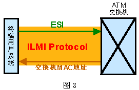 在呼叫建立過(guò)程中終端系統(tǒng)和ATM交換機(jī)之間(UNI)通過(guò)過(guò)渡性本地管理接口(ILMI:Interim Local Management Interface)協(xié)議完成地址注冊(cè)。注冊(cè)過(guò)程如下圖所示。