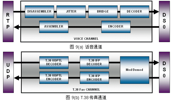Fusion 提供了標準的MSPP通道類型以支持語聲編解碼和T.38傳真,且可由應用程序按需調(diào)用接口函數(shù)創(chuàng)建單工或雙工通道來對數(shù)據(jù)進行處理,其中雙工通道實際上包含兩條單工過濾器鏈組。