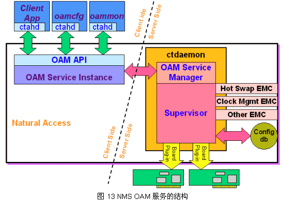 最后,我們這里給出NMS OAM服務(wù)的結(jié)構(gòu)模式,如圖13,可以看到前面的管理工具也是通過OAM API實(shí)現(xiàn)的