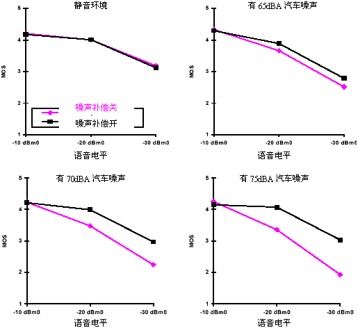 這種功能對消費者來說意味著什么呢?已經(jīng)進(jìn)行了幾個研究,來確定這些功能對一般無線用戶的真正價值,以及測試他們是否確實注意到使用這些功能前后的差別。獨立地進(jìn)行的Mean Opinion Score(MOS)測試顯示出:噪聲補償功能提高的語音質(zhì)量有20%的用戶能感覺出來,特別是在非常吵雜的情況下而且發(fā)自PSTN側(cè)的話音電平又比較低的時候,噪聲電平通常以忙碌的街角為準(zhǔn)。在一個安靜的環(huán)境中用戶意識不到有任何的影響。