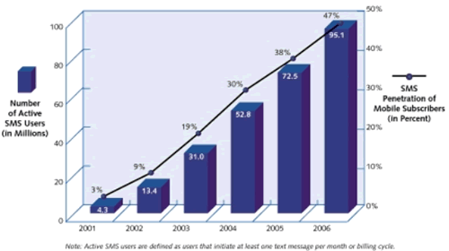 SMS的實(shí)用模型看起來只可能被人的想象力所限制, 從輕佻到嚴(yán)肅. 盡管到目前為止,全球看起來比美國更加為SMS激動,