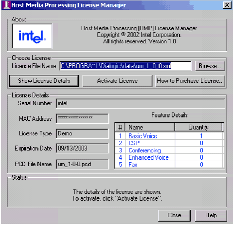 當(dāng)你購買并激活一個永久的HMP許可證后,啟動Dialogic® Dialogic®配置管理器